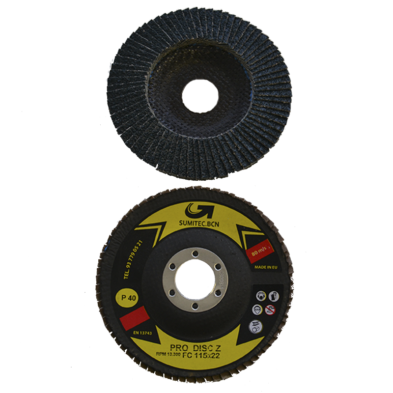 Disco láminas con tela de zirconio. Zirconio profesional, gran rendimiento y larga duración, para todo tipo de metales.