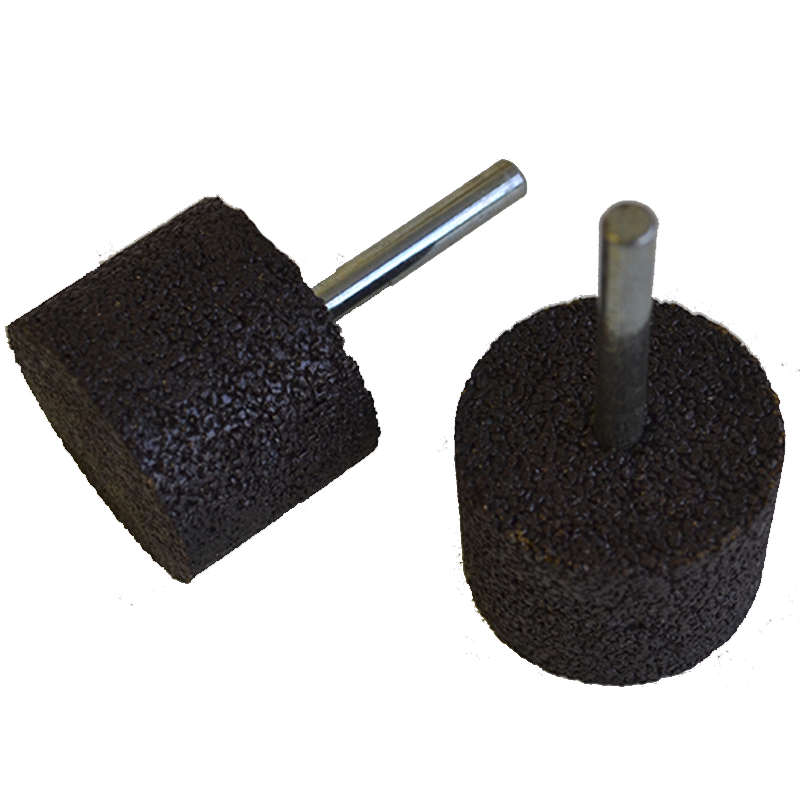 Muela montada en eje 6mm. De corindon, aglomerante resina. Para desbastes en acero al carbono e inoxidable.