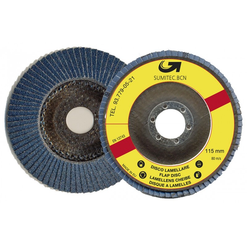 Disco láminas con tela de zirconio básico. Buen rendimiento y duración, precio excepcional. Para todo tipo de metales.