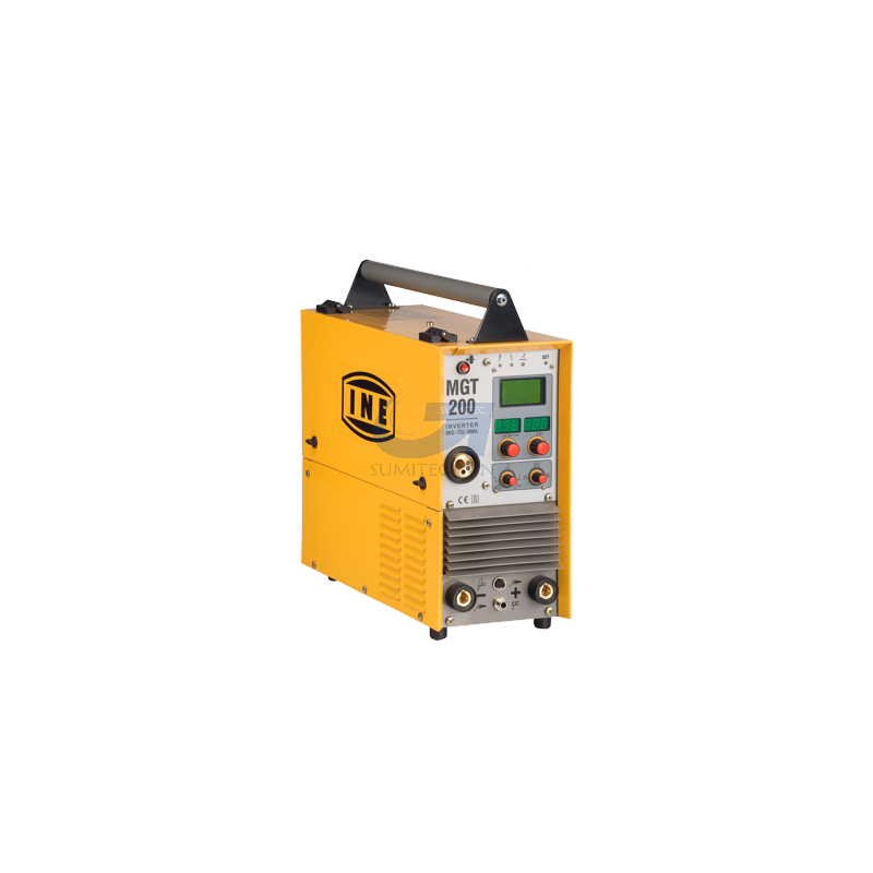 MGT200 es la nueva fuente de potencia multipropósito, con alimentador de hilo integrado, para soldadura MIG/MAG soldadura (de acero, acero inoxidable y aluminio), TIG con HF o LIFT ARC start y el diseño especial características han contribuido a la reducción en peso y tamaño, así como en la potencia absorbida, sin penalizar su rendimiento y fiabilidad de la tecnología inverter de soldadura MMA. El proceso de soldadura, controlado por el microprocesador miles de veces por segundo, asegura estable y casi libre de salpicaduras de soldadura, dinámica excepcional (incluso a bajo amperaje) y comienzo del arco perfecto. El tablero de control completamente digital, equipado con una pantalla amplia, facilita la selección del tipo de proceso de soldadura. El ajuste simple y exacto, así como la detección continua de los parámetros de soldadura, asegura la calidad del proceso y reproducibilidad. En SINCRONIZACIÓN de MIG/MAG soldadura de operación, los parámetros se definen simplemente seleccionando el tipo de alambre y diámetro y el gas a utilizar. Para adaptarse a los diferentes usuarios, todos los parámetros se pueden ajustar y modificar manualmente, así. TIG soldadura de operación permite el ajuste de la pendiente, pendiente abajo, pre- gas y post-gas entre 0 y 10 segundos. La opción TIG PULSADO, con la frecuencia del pulso ajustable entre 1 y 250 Hz, así como corriente de base y pico ajustable, permite la soldadura en placas muy finas como el limitado calor producido reduce el riesgo de deformación del metal soldado con autógena. MMA soldadura funcionamiento permite el ajuste de ambos Hot Start, para facilitar el comienzo del arco cuando se suelda con electrodos revestidos y arco fuerza, para evitar que estos se pegue cuando la soldadura. Las fuentes de energía están equipadas con dispositivos de seguridad apropiados para su funcionamiento. Un sensor de temperatura y el control de la tensión de red (fluctuaciones entre -20% y 15% del valor nominal) protege los componentes internos. Versiones disponibles son el aire-refrigerantes-en-carro y la versión refrigerada por agua (con antorcha integrada unidad de refrigeración).