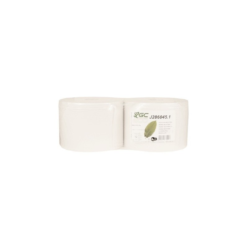 Bobina de celulosa industrial de papel tisú de 500 m. El sistema de unión de capas encoladas permite la máxima resistencia y absorción.